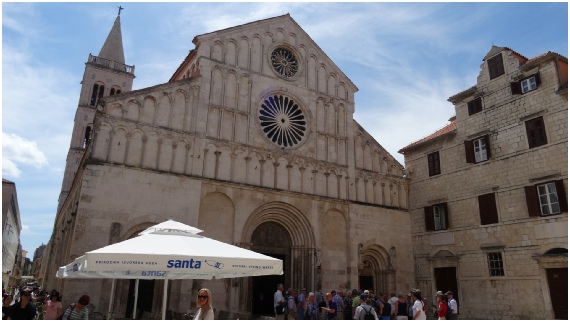 De St. Anastasia kathedraal is misschien wel de meest indrukwekkende in Zadar en ligt op ongeveer tien minuten lopen van de oude stad en is vooral bekend om zijn prachtige romaanse gevel. De bouw van de kathedraal begon in de 12e eeuw en wordt aangeprezen als zijnde de grootste van heel Dalmatië. Hoogtepunten zijn onder meer de drie deuren en bogen, evenals de marmeren sarcofaag, de kleurrijke fresco's, het hoofdaltaar en de hoge klokkentoren.