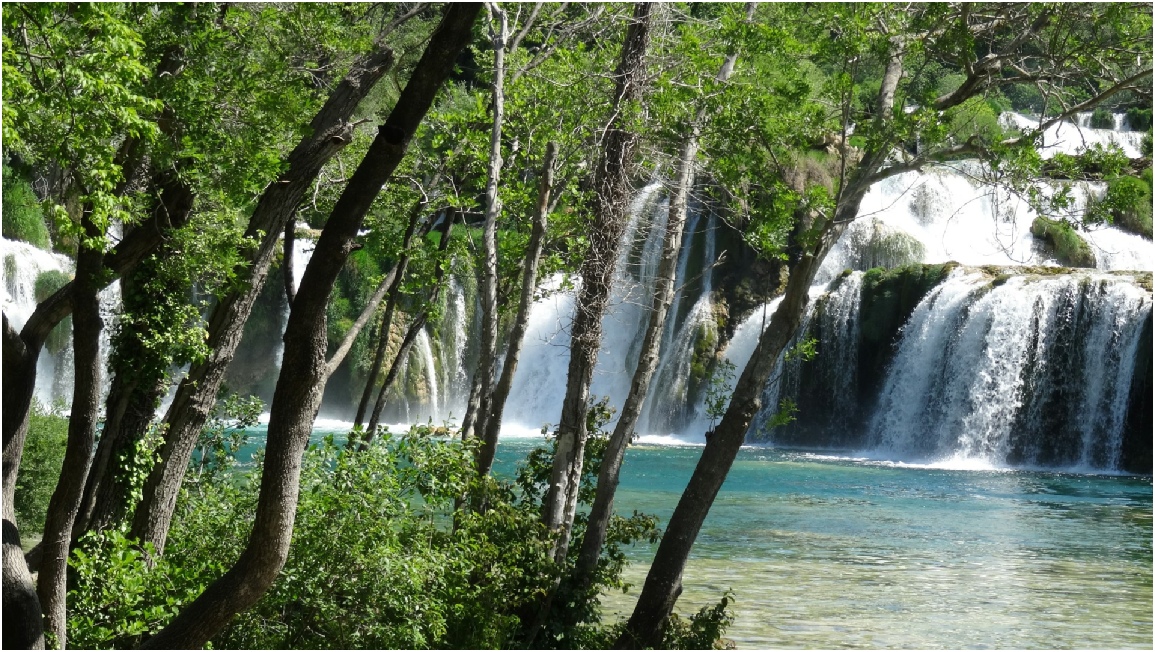 De Krkawatervallen in het nationaal park bestaan uit zeven uit kalksteen gevormde watervallen.