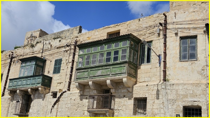 De typische houten erkers of gesloten balkons in Valletta worden een gallarija genoemd.