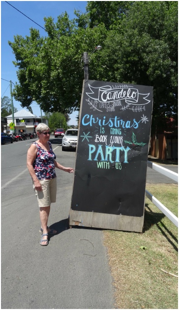 Maar in Cooma was wel de mogelijkheid om een pilsje te drinken op het terras, zij het onder toeziend oog van de kerstman op de achtergrond.