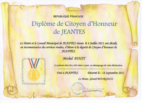In juli belde de burgemeester mij op om me mede te delen dat de gemeenteraad van Jeantes had besloten om mij ereburger te maken van Jeantes en om bij de provincie Aisne een verzoek in te dienen om mij de medaille d’honneur van het département Aisne te verlenen.