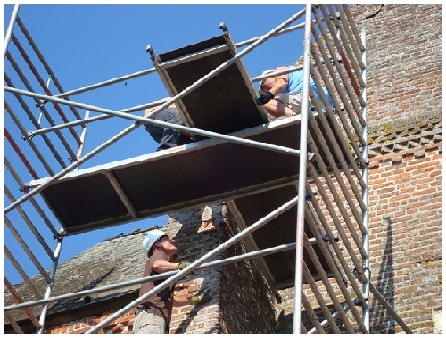 Dat laatste bleek echter op dat moment onmogelijk omdat het voor de vrijwilligers te gevaarlijk was om de steiger zo hoog te bouwen en zo hoog te werken zonder extra voorzieningen en veiligheid ging voor alles.