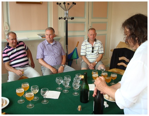 De burgemeester en zijn vrouw hadden ons opgewacht en we hadden afgesproken dat we in het gemeentehuis vrijdagmiddag om 4 uur een glaasje champagne kwamen drinken met vlaai.