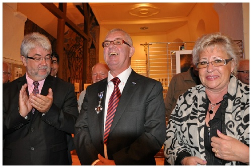 Hij benoemde Jacqueline en mij tot beschermvrouwe en beschermheer van de vrijwilligers van Jeantes en bezegelde dit met een diploma en bijbehorende medailles.