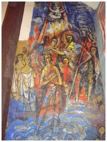 Les peintures ont beaucoup souffert de l'humidité. On découvre derrière une fissure entre la nef et le bas-