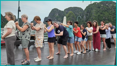 S' morgens om 06.00 uur stonden wij op en werden om 06.15 uur verwacht boven op het dek voor de ochtend gymnastiek.