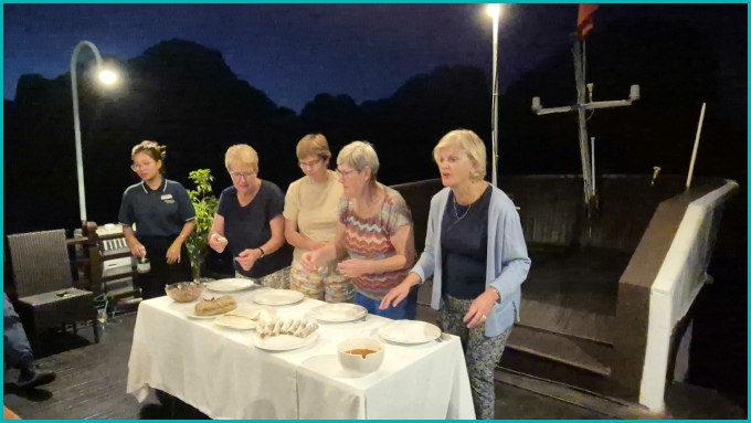 Wij gaan per boot naar Hạ Long Bay, waar we ook op overnachten.