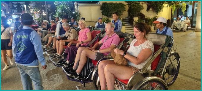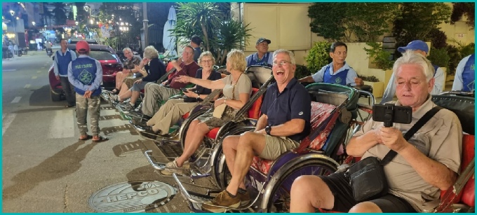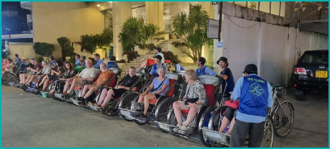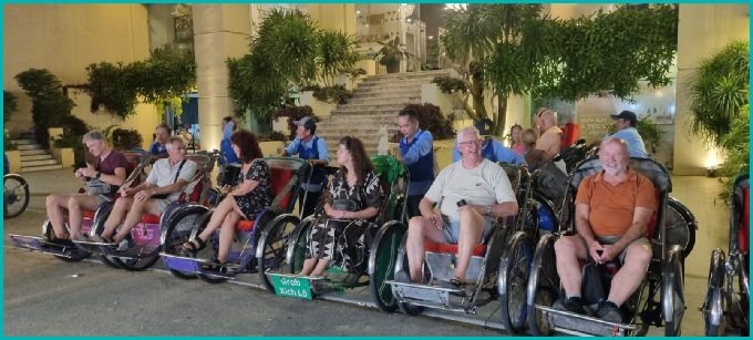 'S avonds kennis gemaakt met een rit per riksja naar de citadel van Hue.