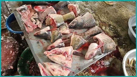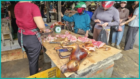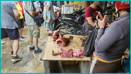 Onderweg naar Dong Hoi hebben wij een lokale markt bezocht waar veel levende have werd verkocht.