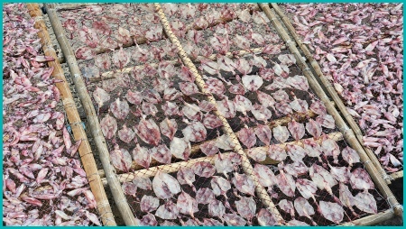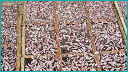 Hier worden garnalen te drogen gelegd.