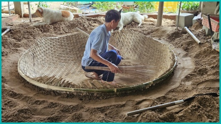 Bamboe mandboten, lokaal bekend als 'thung chai', worden in Vietnam op traditionele wijze met de hand gemaakt.