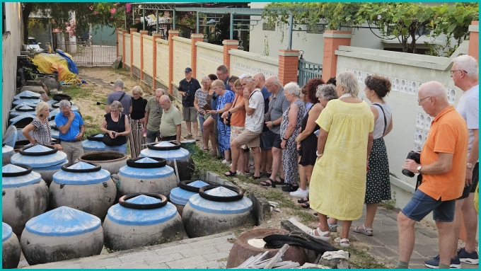 In Mui Ne staan overal fermentatievaten voor de bekende nuoc mam (vissaus), die gemaakt wordt met 1 kilo zout, 3 kilo ansjovis en water, waarna het mengsel minstens 1 jaar blijft staan.